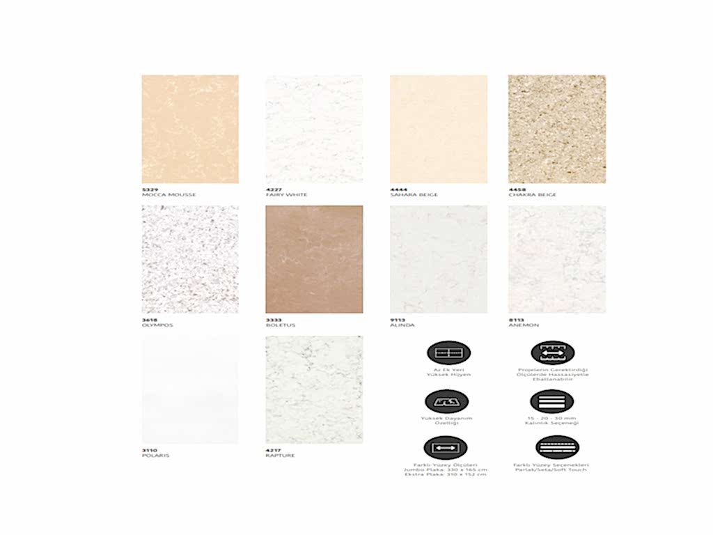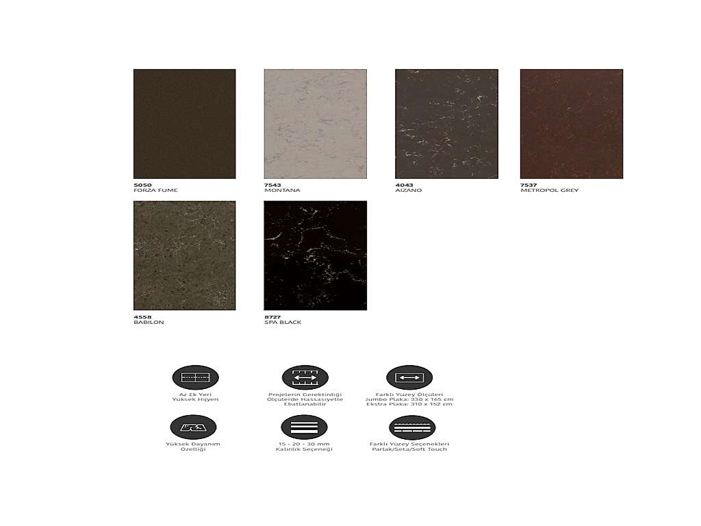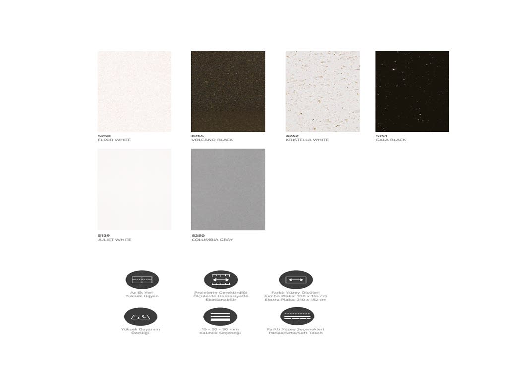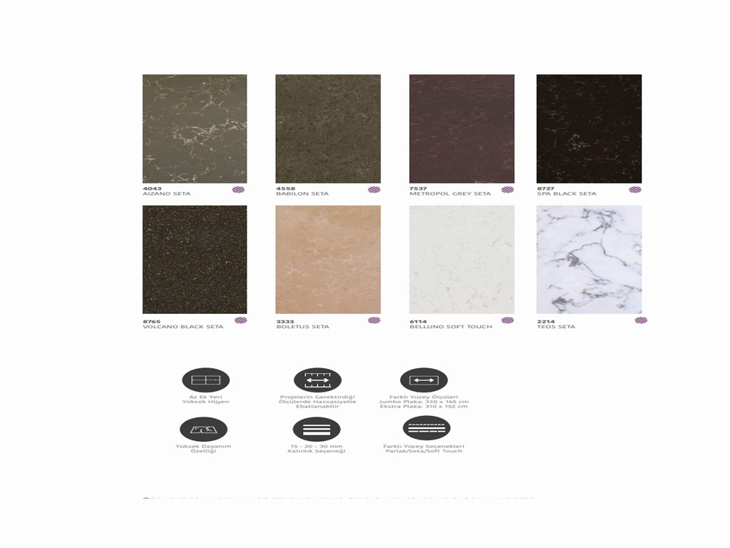 - Granitin gözeneksiz yapısı lekelenmeyi önler, temizliği kolaylaştırır ve hijyenik, suya dayanıklı bir yüzey sunar.